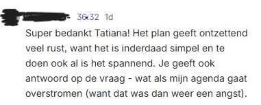 Je hebt duidelijk overzicht over: wat blijft, wat sneuvelt, wat heeft NU prioriteit en wat is leuk voor later.